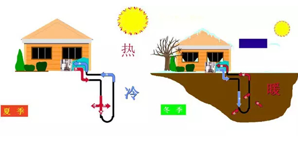 作為地源熱泵系統的熱量來源(冬季)和熱量的減排低放源(夏季)的土壤深度在數米以下,全年溫度基本恒定,冬季遠高于室外空氣溫度,夏季又低于空氣溫度,因此地源熱泵的熱量轉移的條件遠憂于空氣源熱泵,只需要較少的外界能源即可實現熱能的順利轉移。